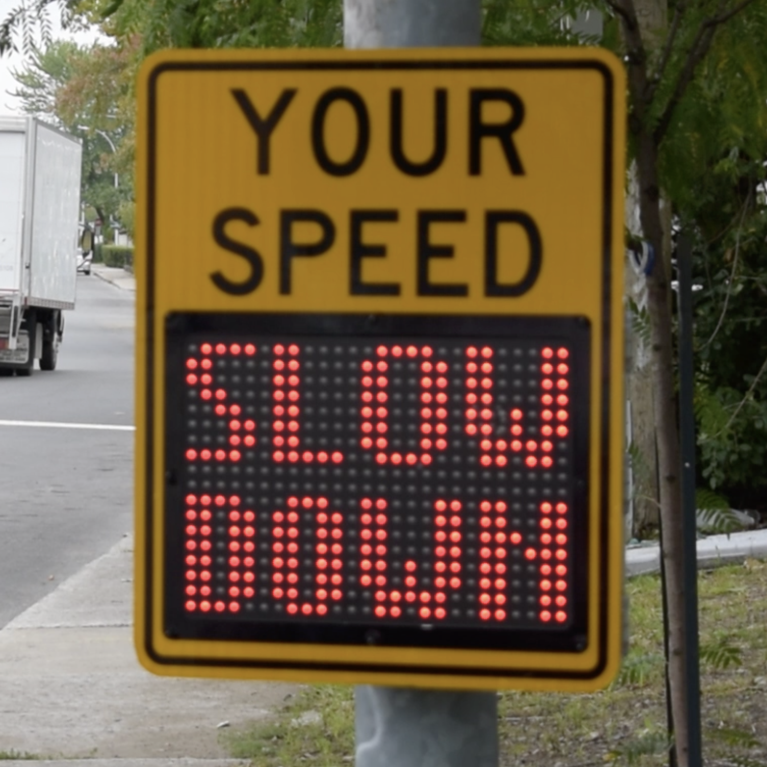 Radar signs are a great way to reduce distraction since they use the same visual stimuli that drivers are seeking from their other devices. They alert drivers to their speeds and offer features such as flashing strobes, color changing digits, and slow down messaging to engage drivers and encourage them to slow down.